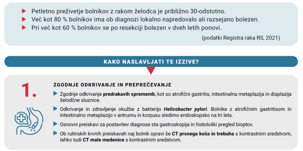 Po podatkih Registra raka RS je bilo leta 2021 petletno preživetje bolnikov z rakom želodca približno 30-odstotno. Več kot 80 % bolnikov je ob diagnozi že imelo lokalno napredovalo ali razsejano bolezen, pri več kot 60 % bolnikov se po resekciji bolezen v dveh letih ponovi. Kateri pristopi napovedujejo boljše izide?